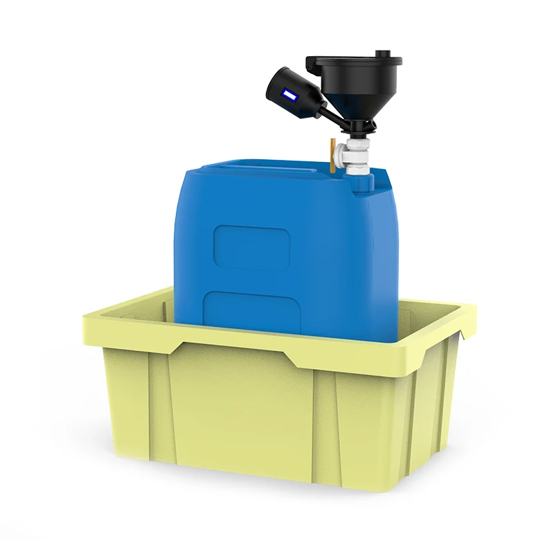 Системот за собирање отпадна течност е опремен со стандарден индикатор за нивото на пливање и антистатичко заземјување.