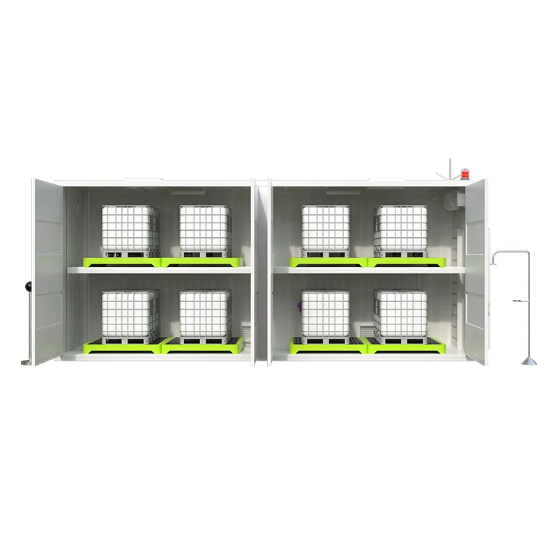 Овој кабинет за складирање е опремен со сеопфатен сет на капацитети за контрола на безбедноста и животната средина, што го прави сигурен избор. Има систем за заштита од пожар и кражба, водоотпорна заштита и електрична опрема отпорна на експлозија. Интегрираниот систем за гаснење пожар, вклучително и уред за гаснење пожар со цевки со хептафлуоропропан, може брзо и ефикасно да ги потисне пожарите. Дополнително, напредниот систем за следење на животната средина континуирано ја следи концентрацијата на испарливи органски соединенија (VOCs), температурата, влажноста и вентилацијата, обезбедувајќи безбедно и стабилно опкружување за складирање. Без разлика дали е за индустриска, комерцијална или јавна институционална употреба, овој слоевит кабинет за складирање на отворено обезбедува безбедно и практично решение за потребите за складирање на отворено.