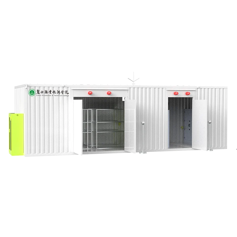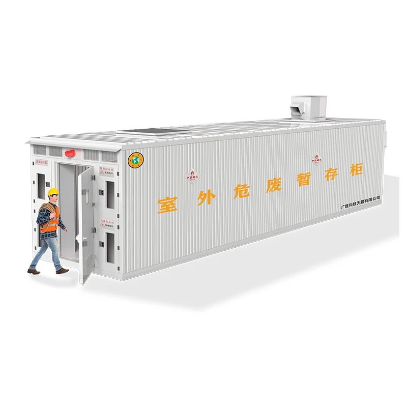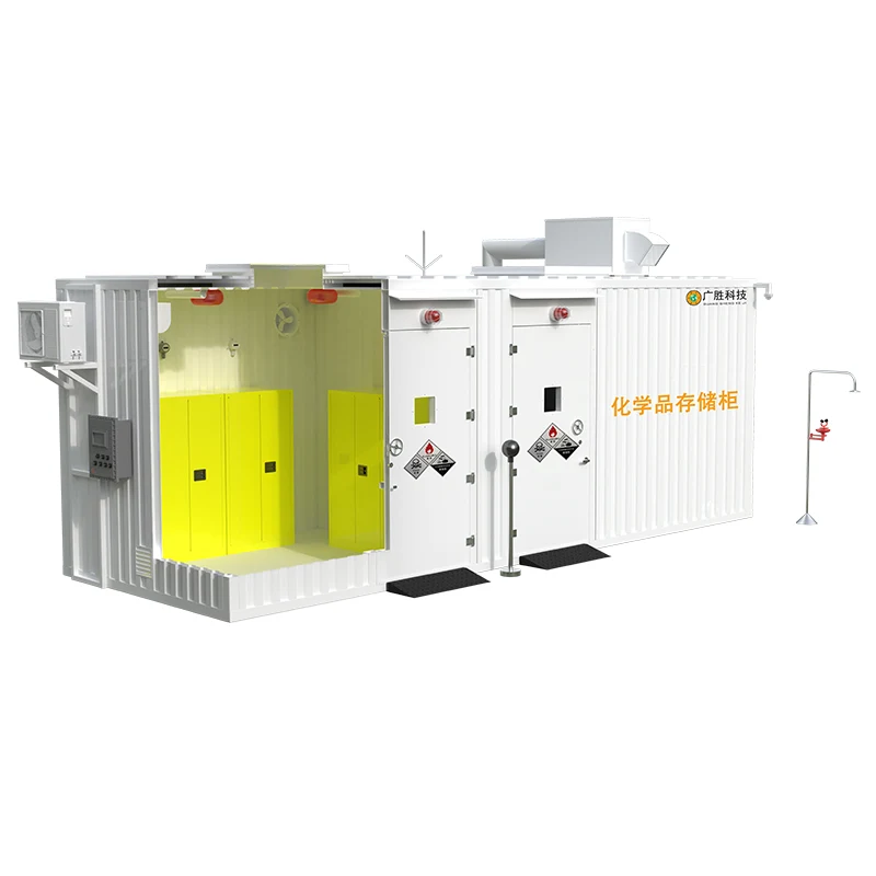 Структурата на кабинетот за привремено складирање на отворено вклучува кутија, систем за управување со софтвер, IoT платформа за управување со облак, систем за заштита од гром и антистатичко заземјување, систем за следење отпорен на експлозија со висока дефиниција, систем за напојување отпорен на експлозија, систем за постојана температура и влажност, систем за осветлување отпорен на експлозија, систем за автономно управување со класа и алармен систем за управување со автономна класа и аларм, антипожарен систем. систем за вентилација и издувни гасови, систем за враќање на истекување, систем за третман за прочистување на издувните гасови, систем за лична заштита, резервен систем за средства за чистење, систем за автоматско ослободување од притисок, туш за итни случаи и други системски единици. Корисниците можат да го изберат функционалниот систем според табелата со барања за конфигурација обезбедена од Guangsheng Technology.